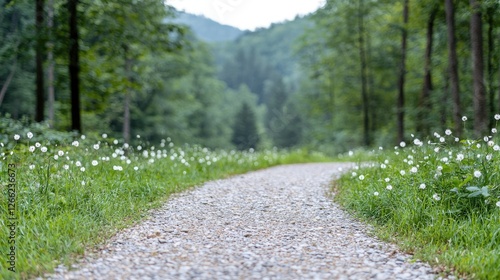 © tugkiara, Obraz premium Forest path winding through meadow, peaceful scenery
