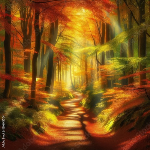© Владимир Стеблев, Naklejka premium Forest Path with Autumn Leaves