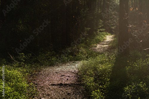 © AyKayORG, Obraz premium forest path with beautiful sunlight in springtime