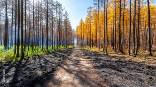 © Faizer, Obraz premium Forest Path with Bright Shadows and Pollution Contrast