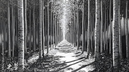© Liaisan, Naklejka premium Forest Path With Bright Vertical Light Summe