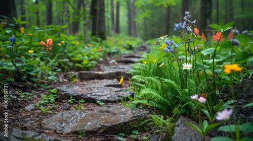 Fototapeta premium Forest Path with Flowers