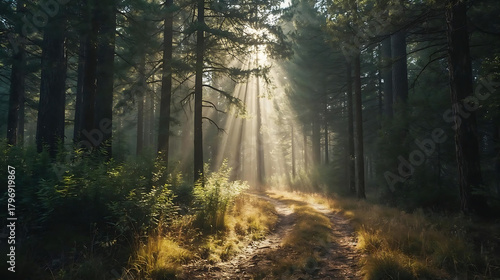 © Muhammad, Fototapeta premium Forest Path with Sun Beams