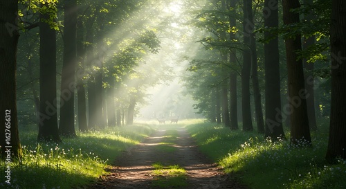 Obraz premium Forest Path with Sun Rays
