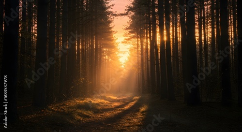 © Lugia Agung, Fototapeta premium Forest Path with Sunlight