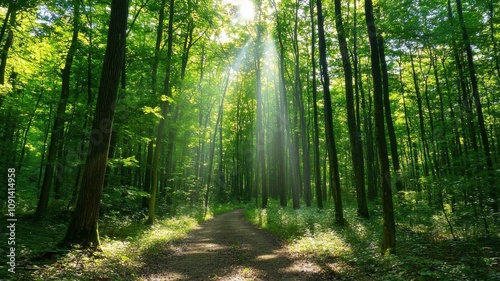 Obraz premium Forest Path with Sunlit Canopy