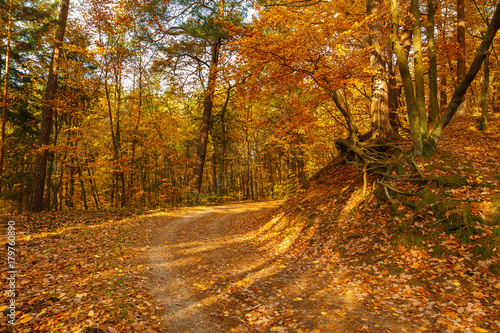 Obraz premium Forest paths in autumn colors in the Tricity Landscape Park, Gdansk, Poland