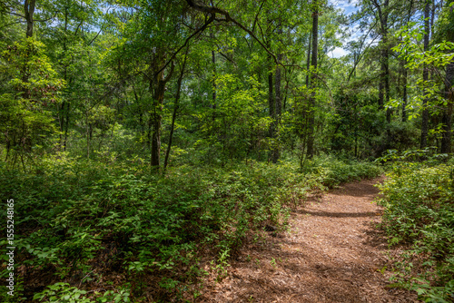 © Nate.Rosso, Fototapeta premium Forest pathway surrounded by lush greenery invites exploration on a sunny day