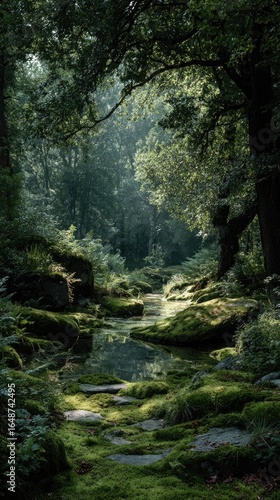 © Rantai, Obraz premium Forest Pathway Through Verdant Growth