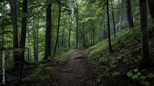 © Matthew, Obraz premium Forest photography capturing deciduous trees and fallen branches on the ground