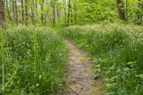 © lapis2380, Obraz premium Forest plant sedge and forest path.