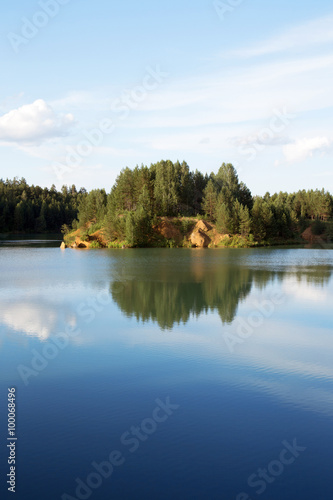 © owlo, Naklejka premium Forest reflecting in lake
