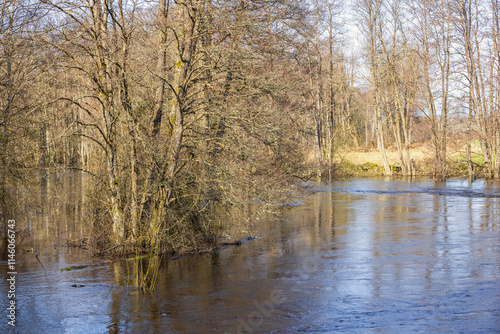 Obraz premium Forest river flooded in early spring