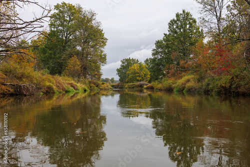 © WoodHunt, Fototapeta premium Forest river in autumn. View from the water
