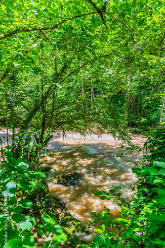 © dadamira, Obraz premium Forest river in the Shareula river valley with rare plants and trees, Georgia