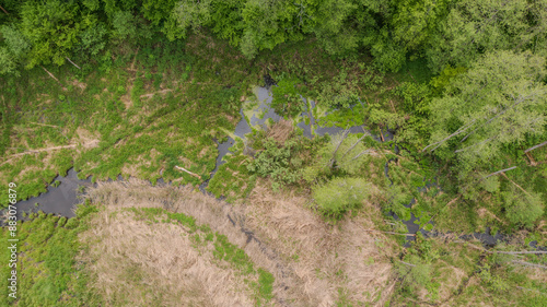 © Aleksander Bolbot, Obraz premium Forest river with dead tree logs lying over