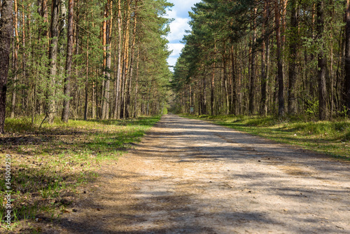 Fototapeta premium Forest road at spring sunny day