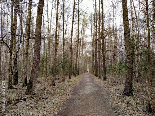 Obraz premium Forest road. Elk Island, Moscow. 25.04.2021