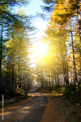© junrong, Fototapeta premium Forest road in the autumn