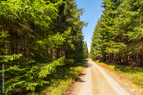 Fototapeta premium Forest road in the middle of an old spruce forest