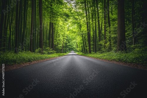 © Bi, Obraz premium Forest road path, green trees