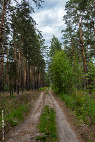 Fototapeta premium forest road with a gloomy sky on a summer day