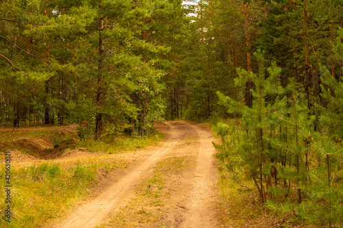 © AlexSviridov, Fototapeta premium Forest road with a view of trees