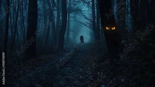 © Rupak, Obraz premium Forest shrouded in fog with faintly visible glowing eyes image