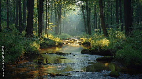 © meta, Fototapeta premium Forest Stream in Sunlight