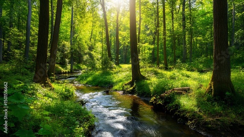© koy, Fototapeta premium Forest stream sunlight nature scene