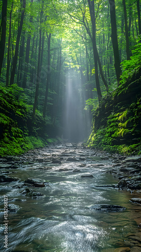 Obraz premium Forest Stream Sunlight Realistic Image