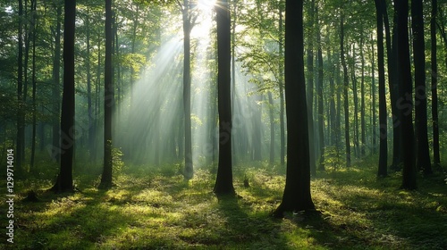 © Kopgz-41, Obraz premium Forest Sunlight Filtering Moment with Filtering with Through