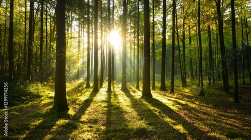 © Kopgz-41, Obraz premium Forest Sunlight Filtering Overview with Filtering with Trees