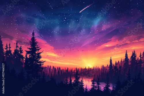 Obraz premium Forest Sunset With Stars