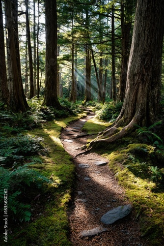 © Nang, Obraz premium forest through towering trees whose thick trunks disappear into a lush canopy overhead