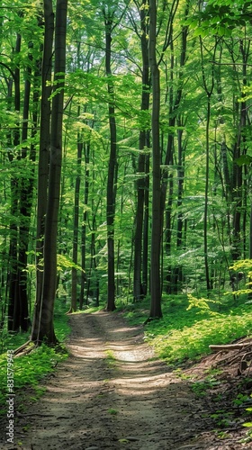 Fototapeta premium Forest Trail, a scene of a forest trail winding through tall trees with...