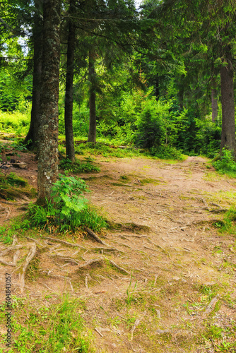 Fototapeta premium forest trail in park. beautiful summer countryside background