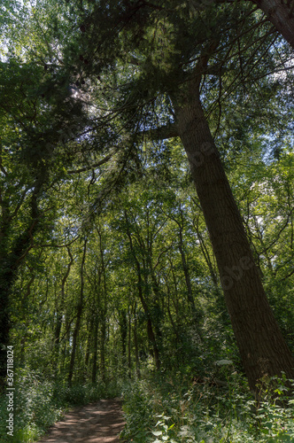 Fototapeta premium Forest trail on a sunny day in The Noordhollands Duinreservaat, The Netherlands