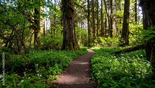 Naklejka premium Forest Trail, Sunlight, Spring Flowers, Pacific Northwest