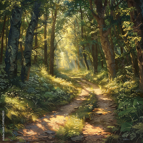 © Pattadon, Fototapeta premium Forest Trail Trail Dens Through Winding Peaceful Show