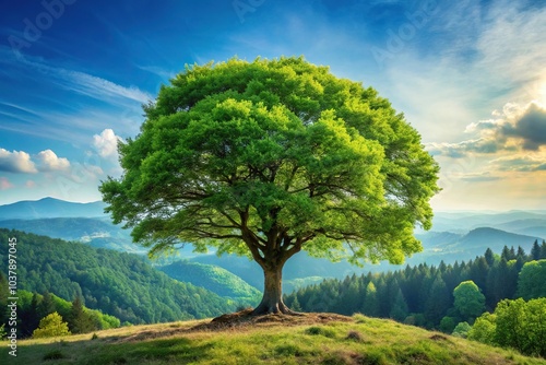 Fototapeta premium Forest tree growing in landscape with grass