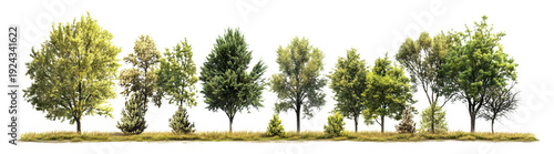 © Yeti Studio, Naklejka premium Forest tree row composition, isolated on transparent cutout background