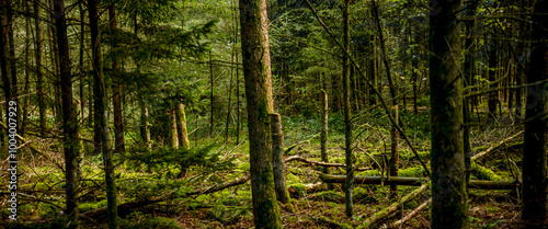 Obraz premium Forest, tree trunks and canope in Dutch Veluwe park region in Emst