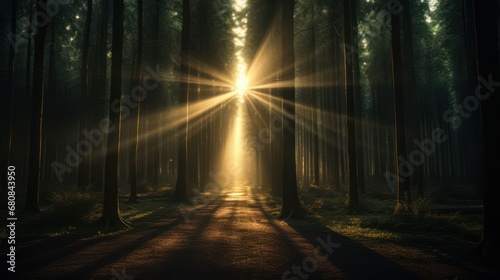 Fototapeta premium Forest Tree with Sunlight Beaming Through