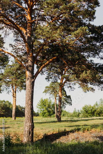 © Olga, Obraz premium Forest, trees and grass in summer sunlight