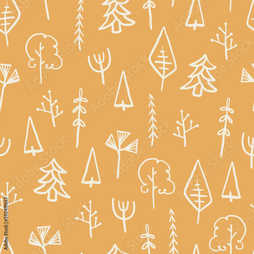 © Allison, Fototapeta premium Forest Trees Doodle Drawing Seamless Vector Repeat Pattern