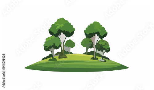 Fototapeta premium Forest trees on green grass elevation simple nature landscape vector...