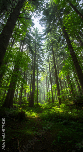 Obraz premium Forest Trees Sunlight Tall Green Path