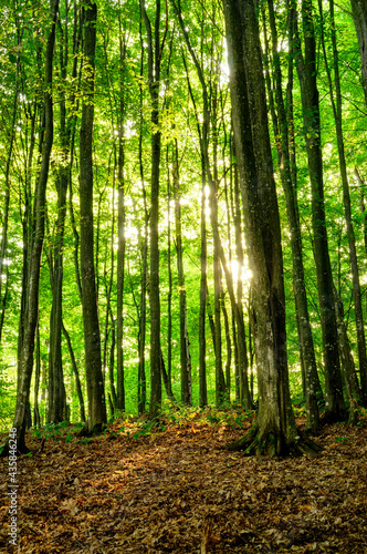© Mihai, Obraz premium Forest trees with sunlight in the background.