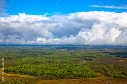 © Vladimir Melnikov, Obraz premium Forest under clouds, top view